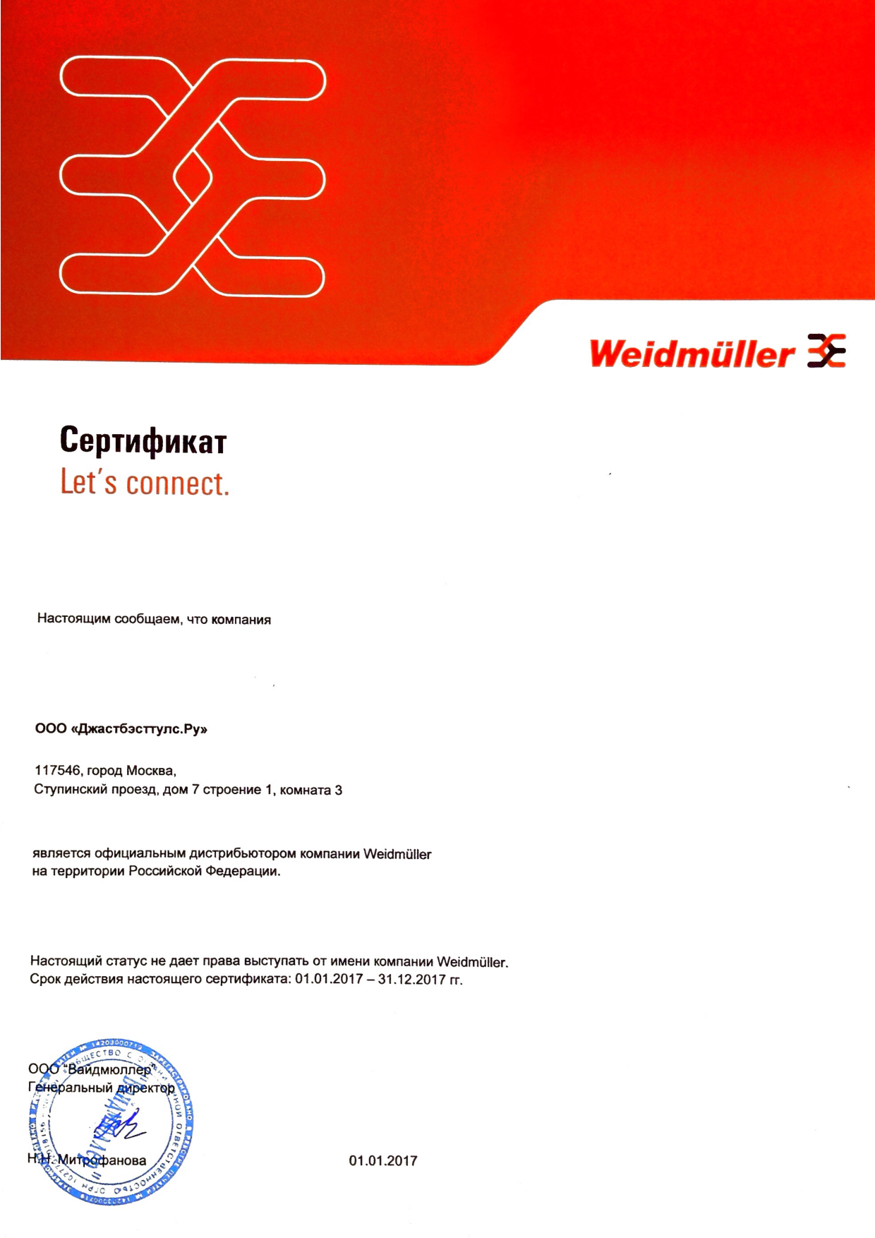 Юридический адрес: г. Москва, Востряковский проезд , д. 10 Б, стр. 3, этаж 2, пом. 5